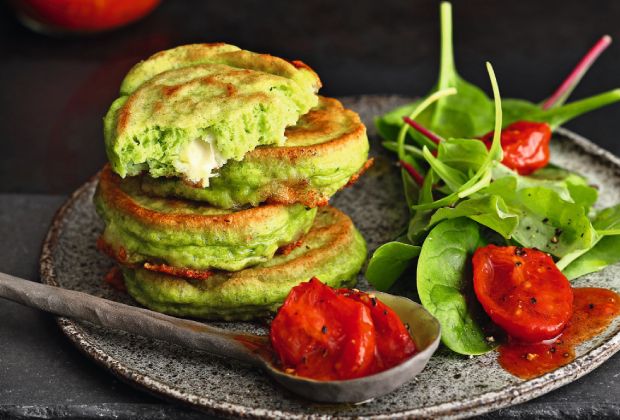Basilikum Mozzarella Blini Mit Datteltomaten Kompott